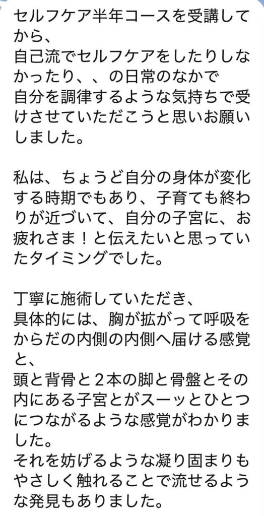 わたしが子宮セラピーを実践してきて実際にそう感じているのですが、以前セルフケアを学んでくださった方が