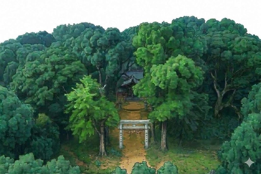 お腹のあたりから、太古の森とお宮のある風景が浮かびました。